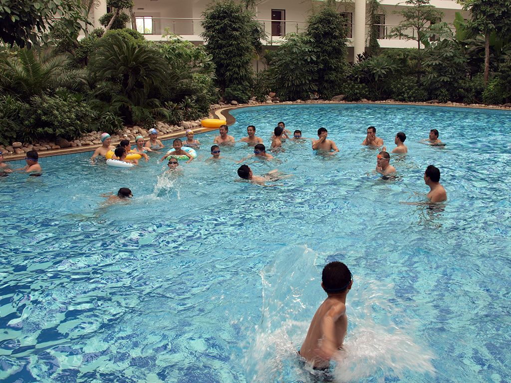 職工及家屬在公司游泳池中嬉戲
